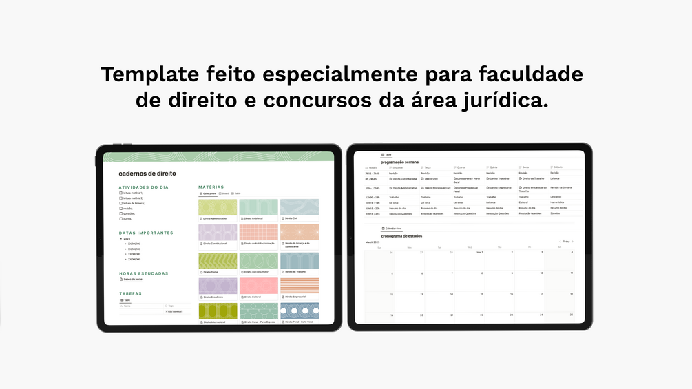 O template "Direito all-in-one" é a ferramenta perfeita para você ter os seus estudos, o seu trabalho e a sua vida pessoa em um só lugar e de forma extremamente organizada.